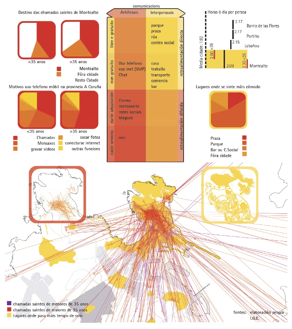 - los patrones de conexión espacial mediante telefonía revelan grandes diferencias espaciales en el tipo de redes personales y profesionales;